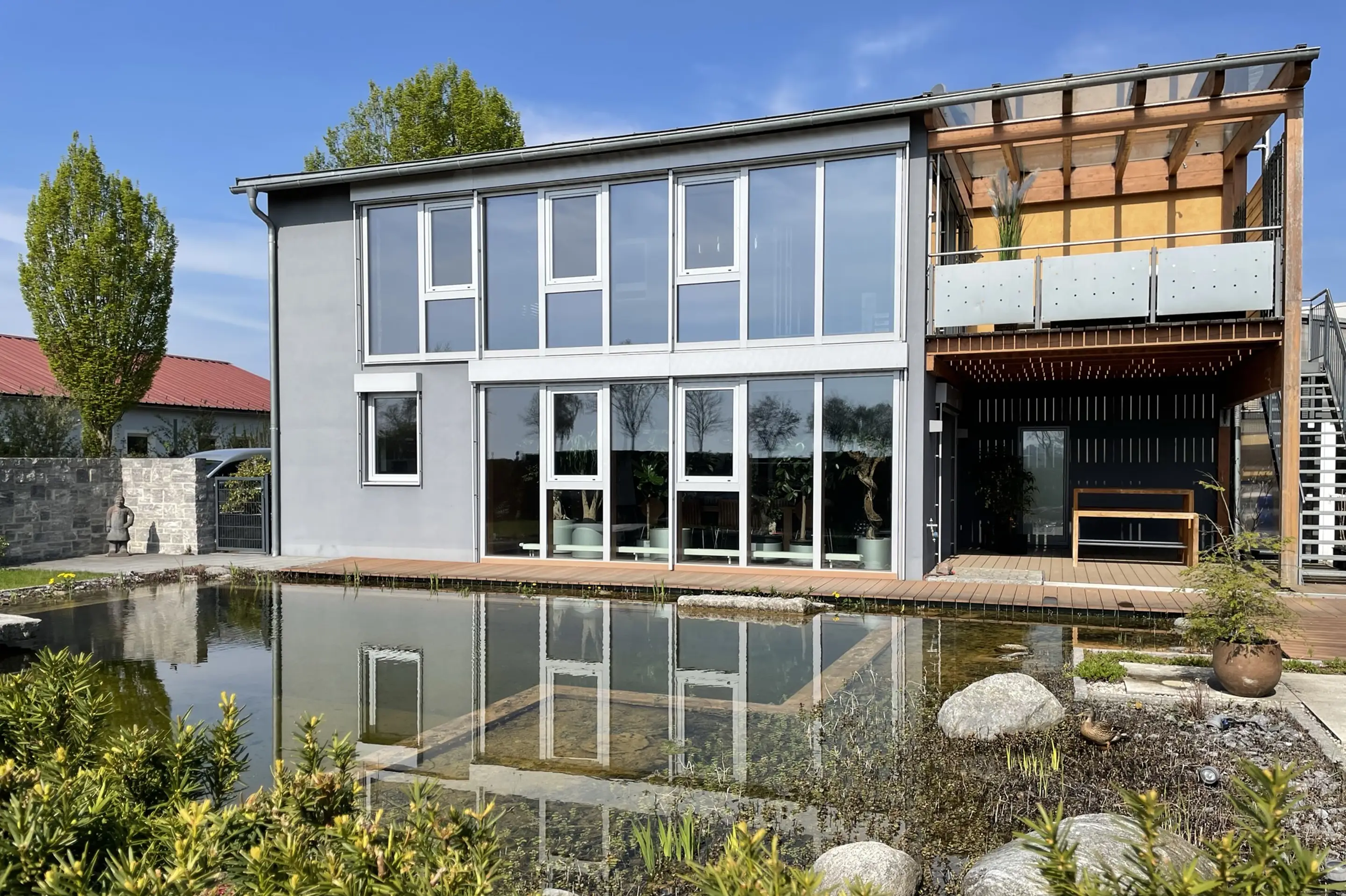 2022 neu eröffnet, bietet Ihnen Koller Work & Stay moderne Doppel- und Vierbettzimmer mit Wohlfühl-Garantie. Alle Zimmer sind Nichtraucherzimmer. Dafür bieten wir Ihnen einen überdachten Raucherbereich auf unserer möbilierten Dachterrasse. Eine voll ausgestattet Küche, ein großzügiger lichtdurchfluteter Gemeinschaftsraum und der hauseigene Schwimmteich laden dazu ein den Arbeitstag in gemütlicher Atmosphäre ausklingen zu lassen. Reisen Sie ohne Zeitdruck. Unser familiär geführtes Haus setzt auf kontaktlosen Check-in. Bei Ankunft registrieren Sie sich einfach mit dem vorab zugesandten Code über Ihr Smartphone. Die zentrale Lage in einer Nebenstraße eines Gewerbe-Mischgebiets garantiert Nachtruhe ohne Straßenlärm. Gleichzeitig erreichen Sie den Kaufpark Neutraubling mit einer Vielzahl an Einkaufs- und Shoppingmöglichkeiten in 5 Minuten zu Fuß. Auch diverse Restaurants, einen Getränkemarkt sowie einen Bäcker mit Frühstücksangebot erreichen Sie zu Fuß in nur wenigen Minuten.